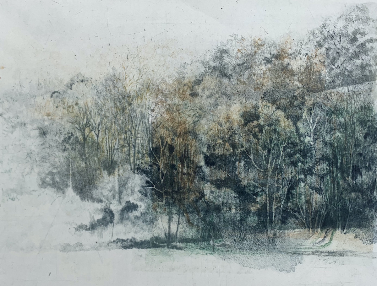 Pointe sèche, taille directe, impression en plusieurs passages, chine collé sur Papier Rives 250 gr